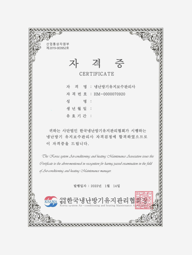 고려정공(주)는 공기정화장치필터 유지관리서비스 단체표준인증서를 취득한 업체입니다.이는 한국산업표준(KS)에 근거한 관리 능력과 품질을 갖춘 기업에만 부여되는 인증입니다.
